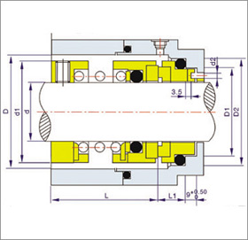 運行參數 密封介質:水、油、中等腐蝕性液體及含固體顆粒的介質 密封腔壓力: ≤0.6MPa 密封腔溫度:-20℃~180℃ 轉速:≤3000r/min (線速度:≤20m/Sec) 密封腔溫度:0℃~+180℃(氟橡膠) -20℃~+90℃(丁腈橡膠) -30℃~+120℃(乙丙橡膠) -40℃~+230℃(聚四氟乙烯) -40℃~+230℃(四氟包橡膠) 符合JB/T 1427-94標準